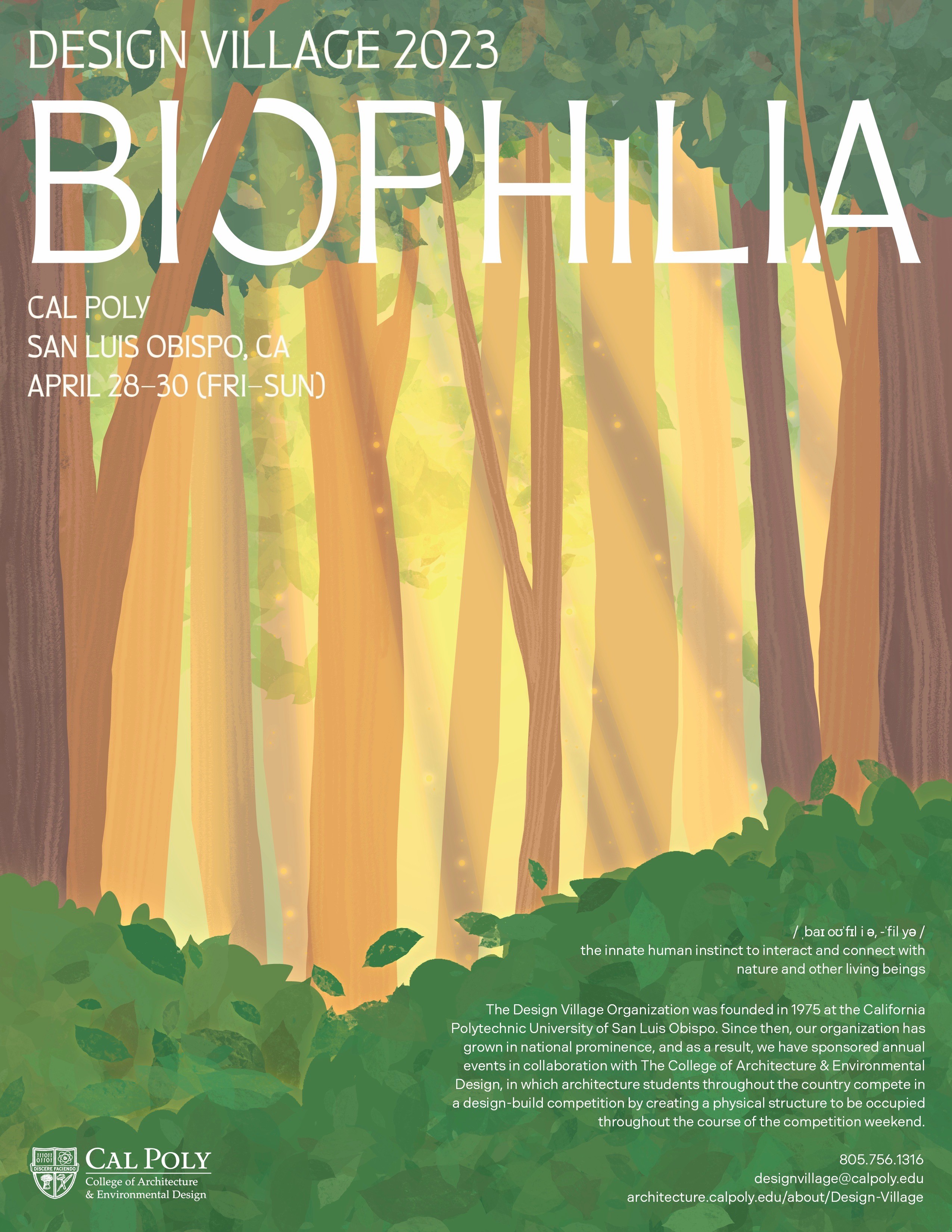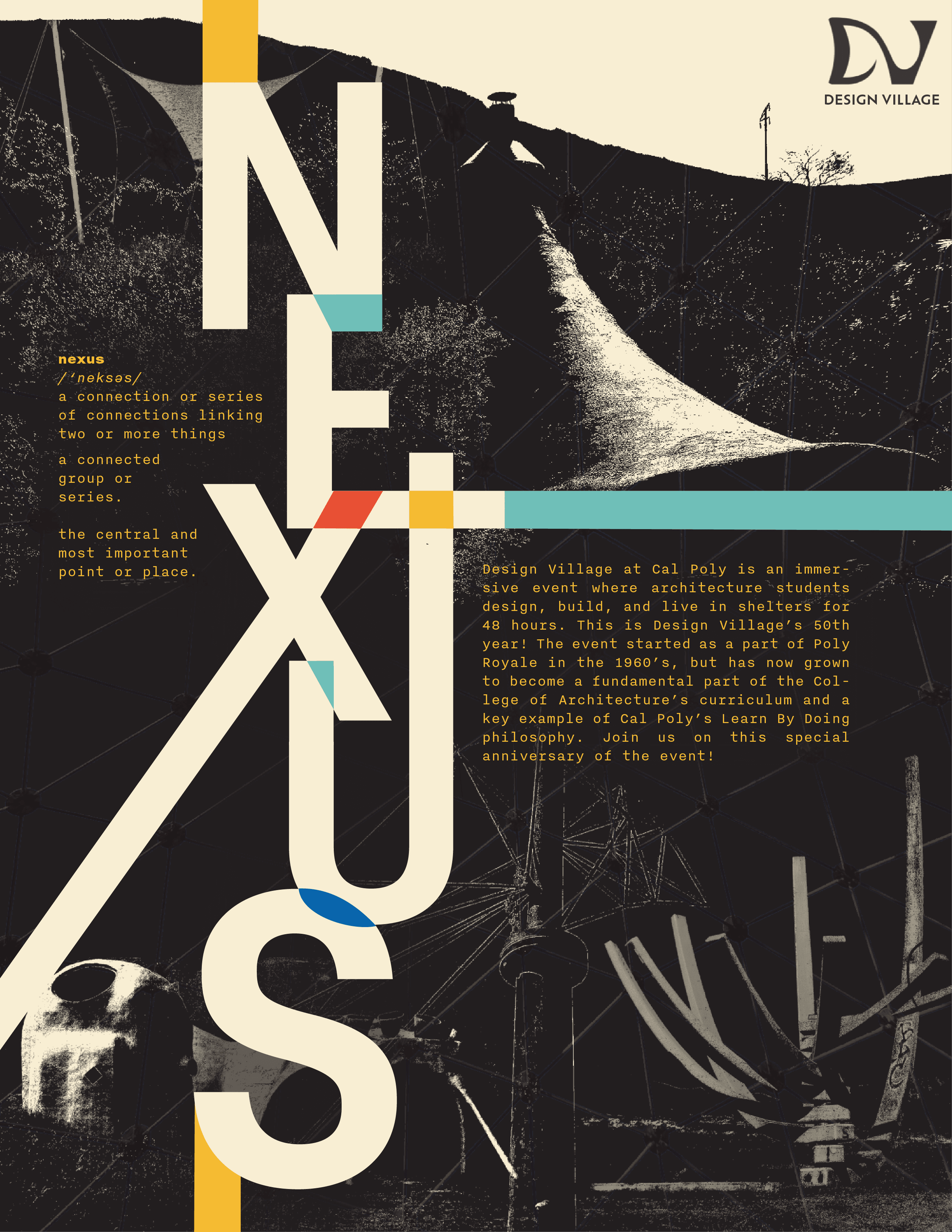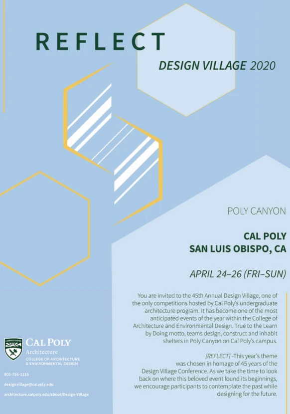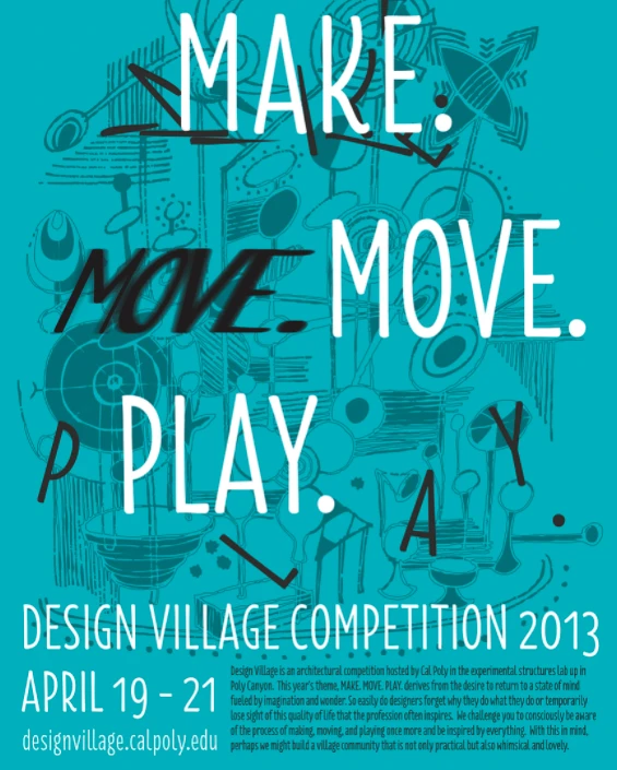 Design Village is a competition hosted by Cal Poly’s College of Architecture and Environmental Design. The Design Village competition has a long history and has become one of the most anticipated events of the year for the college. True to our “Learn-By-Doing” philosophy, competitors follow the design process all the way from idea generation to realization, finally inhabiting the structures for the weekend to truly put their design skills to the test.